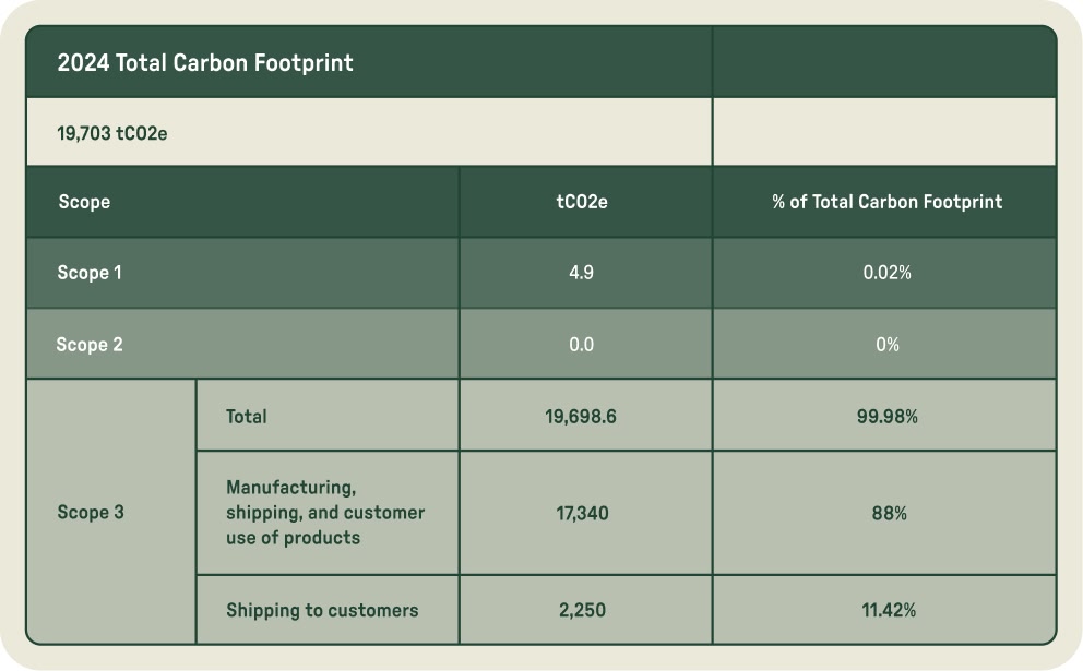 In 2024, our footprint was zero because we only buy renewable energy, and we're committed to keeping it that way.