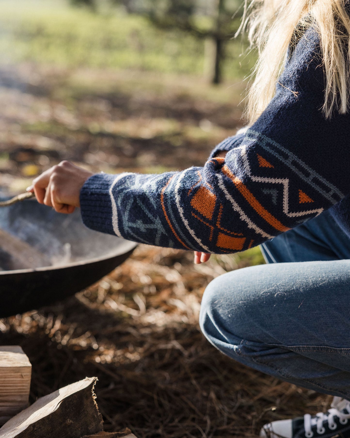 Escape in to canopy covered wilderness with the Ambience knit. Crafted in a recycled yarn with a cosy mock neck, it's perfect for those nights around the camp fire.
