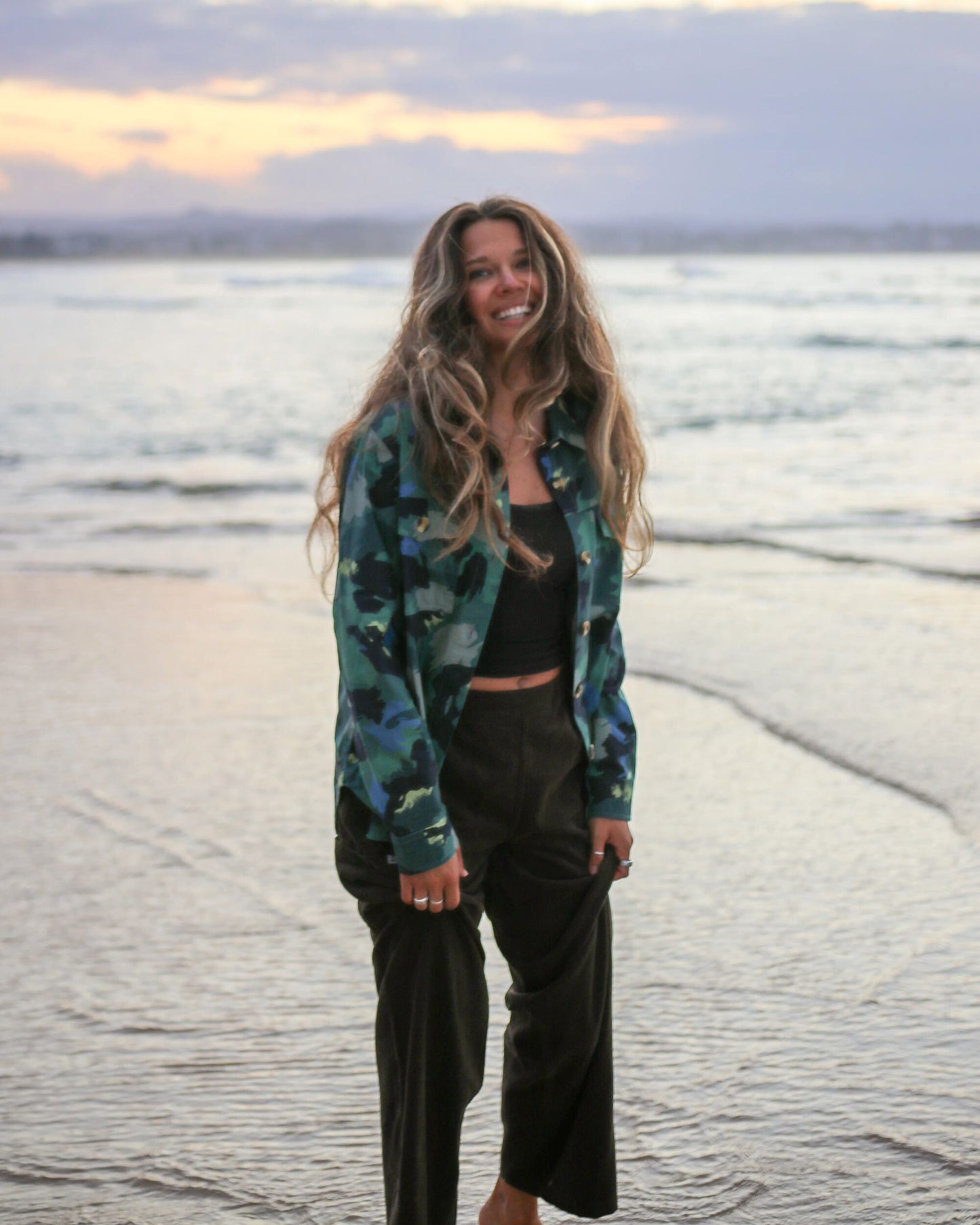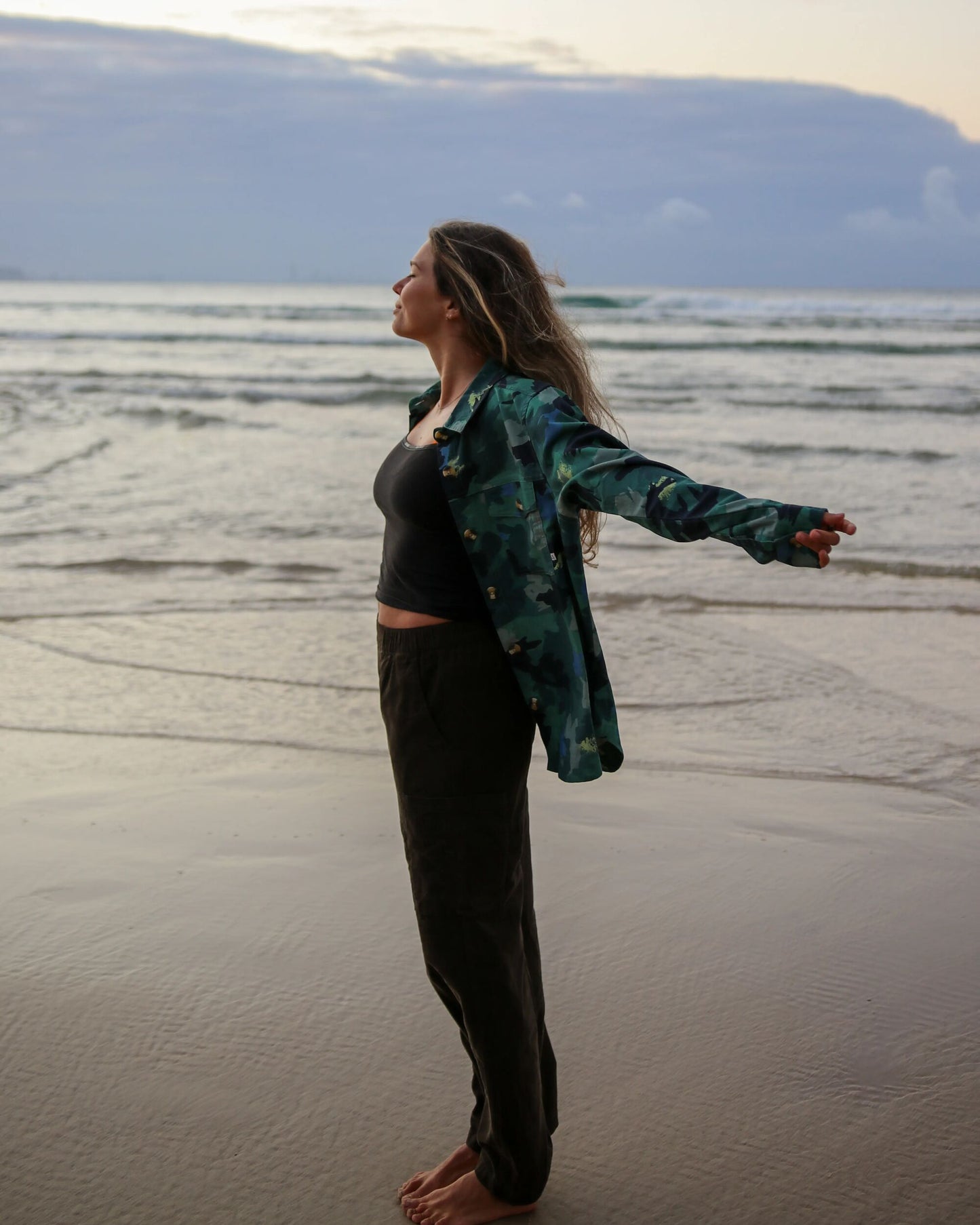 Our Coral shirt is a forever classic with a contemporary adventure edge. Made in an organic Cotton blend with scooped side hem and easy wearing fit, it's a go-to piece from season to season.