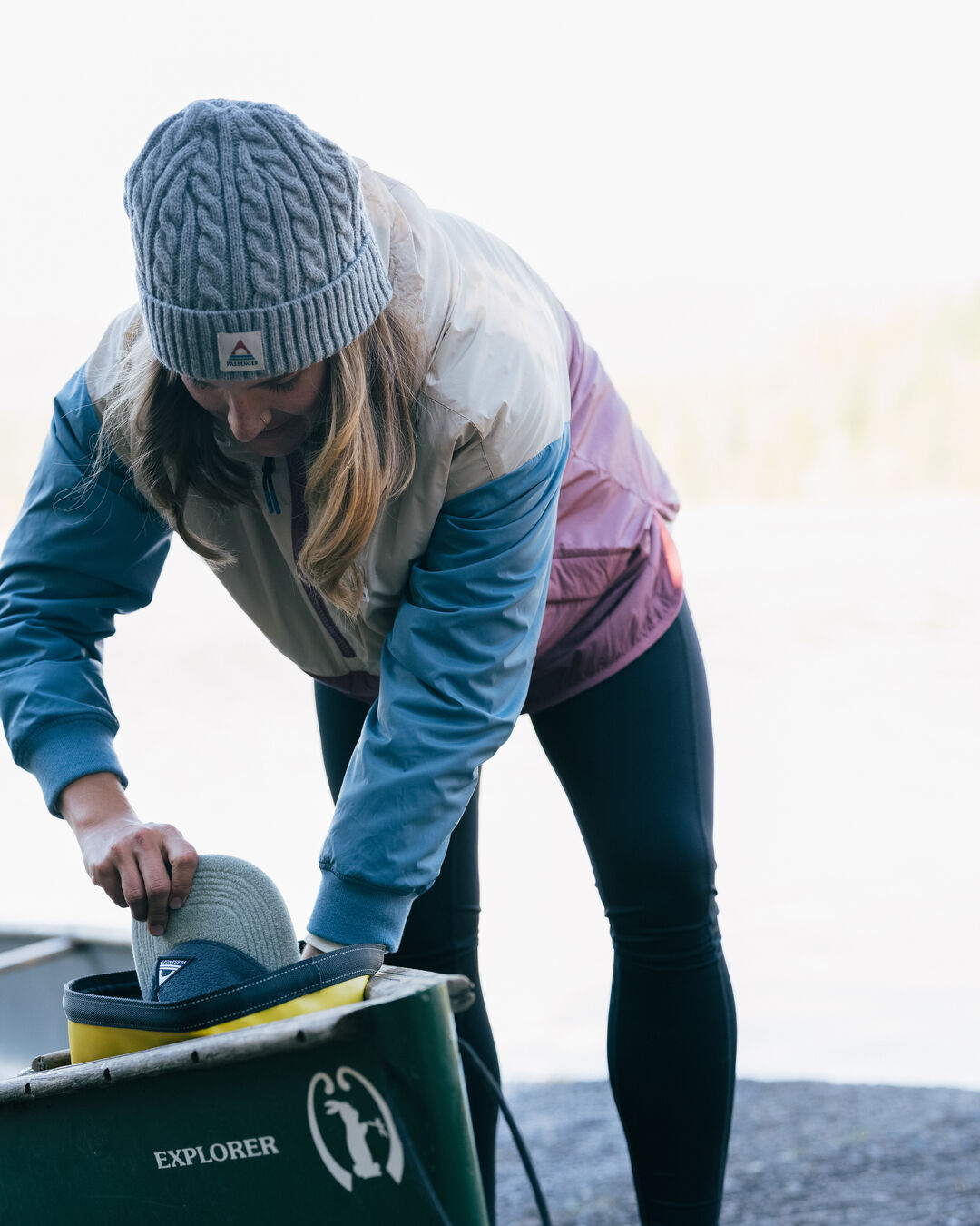 - Cable knit beanie.