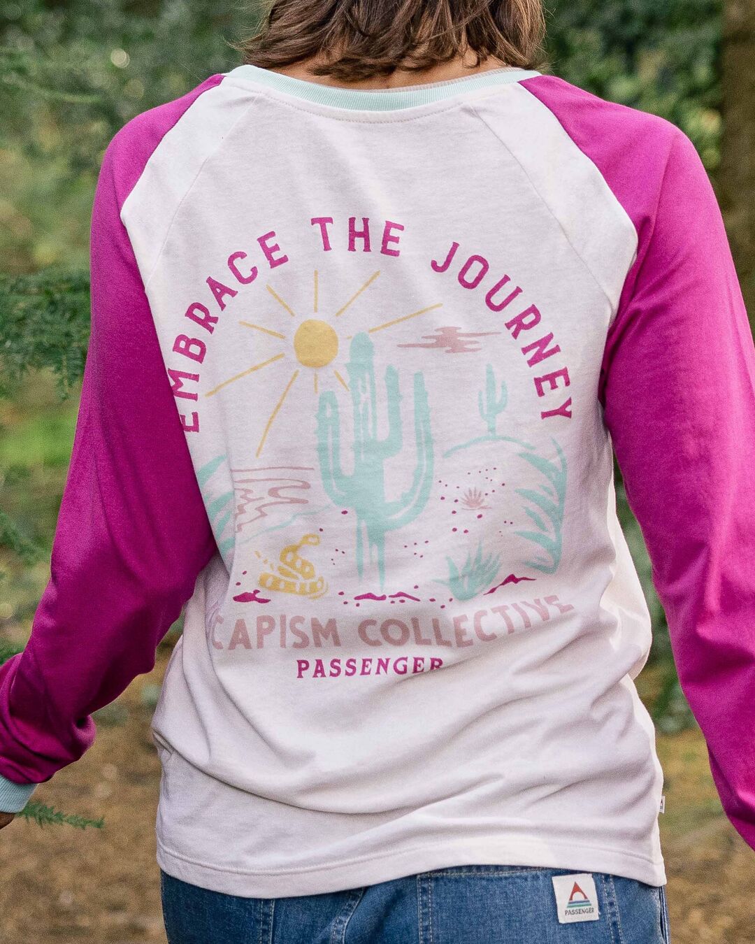 The Laelia is a super comfy, baseball style raglan sleeve T-Shirt with an adventure inspired front and back print. Made in our Organic and Recycled Cotton blend and as always it's Made To Roam.