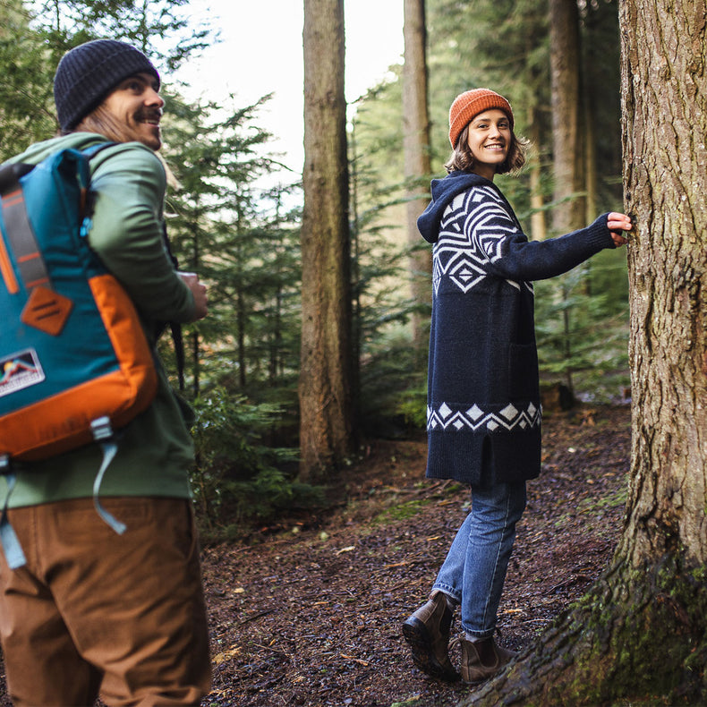 The Palumbo Cardigan is a longline, open front design so it's perfect for those days when the seasons change. Featuring jacquard design and cosy hood is classic knit with a twist.