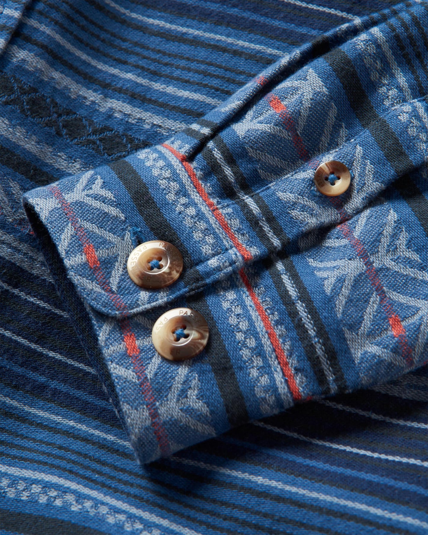- Brushed cotton long sleeve overshirt in a jacquard pattern.