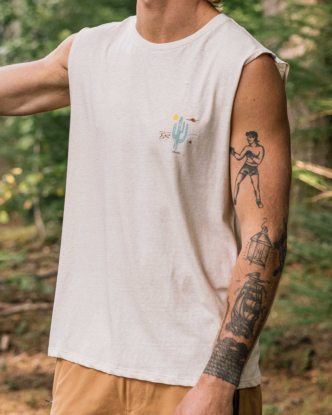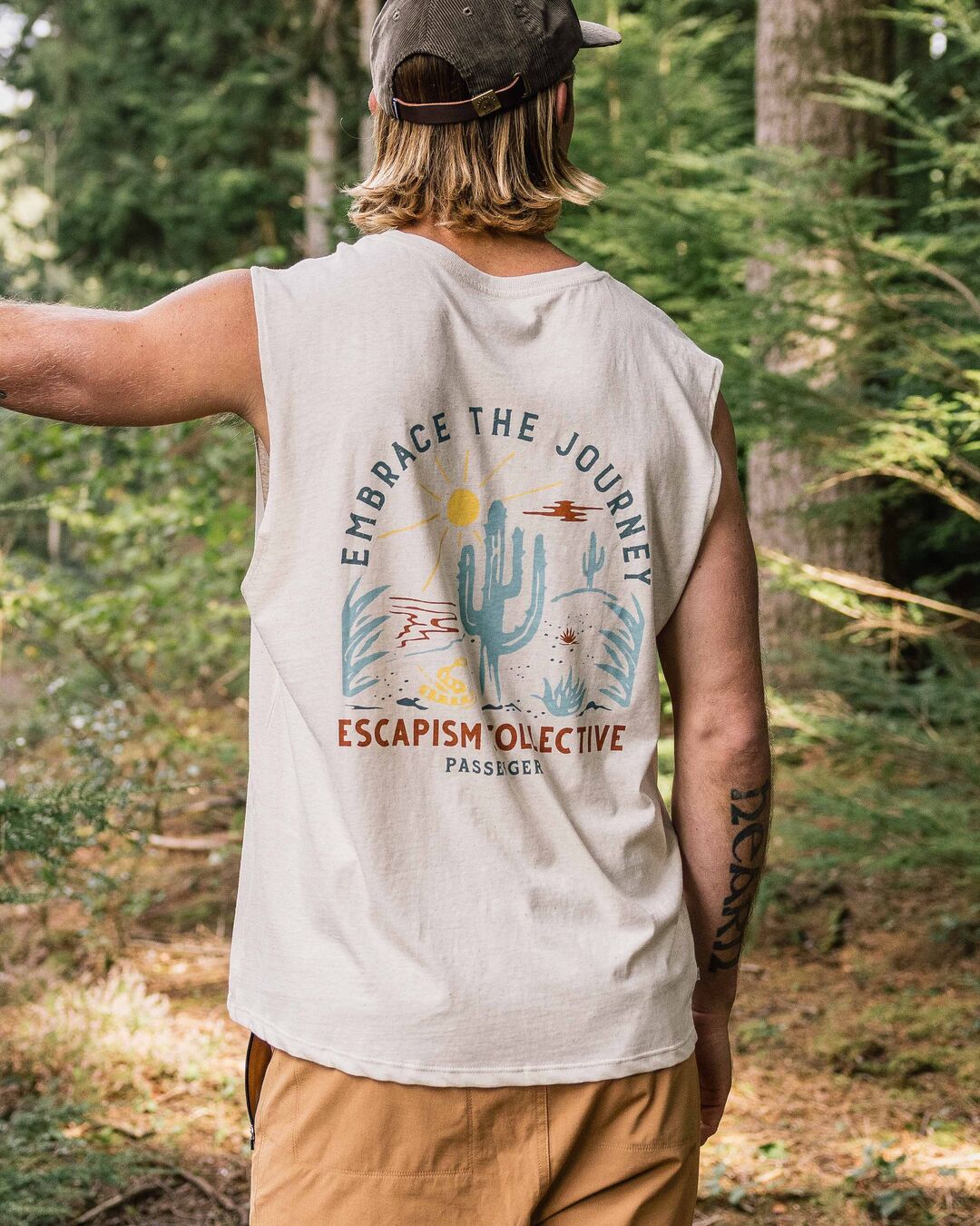 The Tizana is an easy wearing vest featuring graphic print front and back made in lightweight Recycled and Organic Cotton blend. Be part of the Escapism Collective and head out there.
